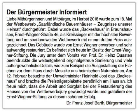 Eröffnung „Backes-Haus“ Ernst Wagner-Stiftung am 21. September 2019